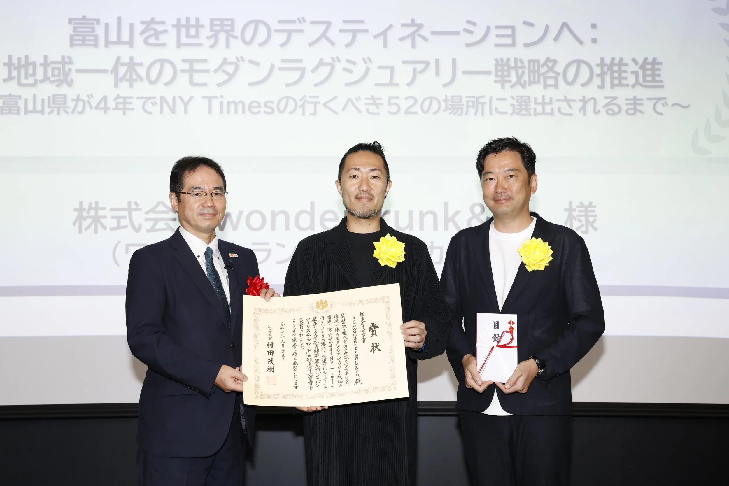 ジャパン・ツーリズム・アワードは、ツーリズムの発展・拡大に貢献した持続可能な優れた取り組みを表彰するもので、今年は213件の応募があり、当社の取り組み『富山を世界のデスティネーションへ:地域一体のモダンラグジュアリー戦略の推進〜富山県が4年でNY Timesの行くべき52の場所に選出されるまで〜』は、観光庁長官賞を受賞いたしました。