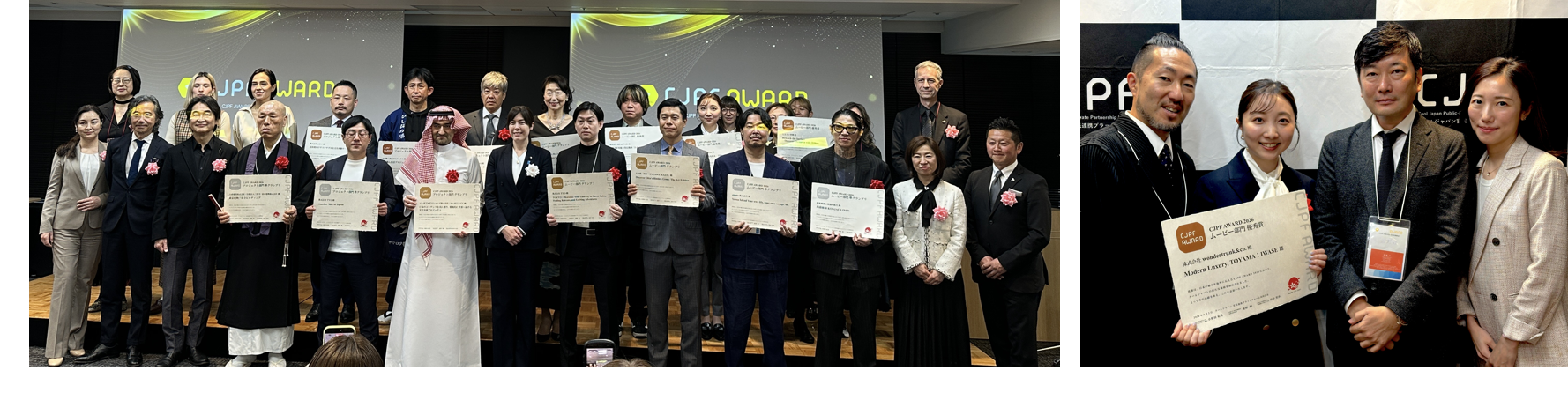 株式会社wondertrunk&co.(ワンダートランク・アンド・カンパニー、本社:東京都渋谷区、代表取締役共同CEO:岡本岳大・高橋亘)は、クールジャパン官民連携プラットフォーム(事務局:内閣府知的財産戦略推進事務局)が主催する「CJPFアワード2026」のムービー部門において優秀賞を受賞し、2026年3月2日(月)に日比谷国際ビルコンファレンススクエアで開催された「CJPFアワード2026表彰式」において表彰されました。